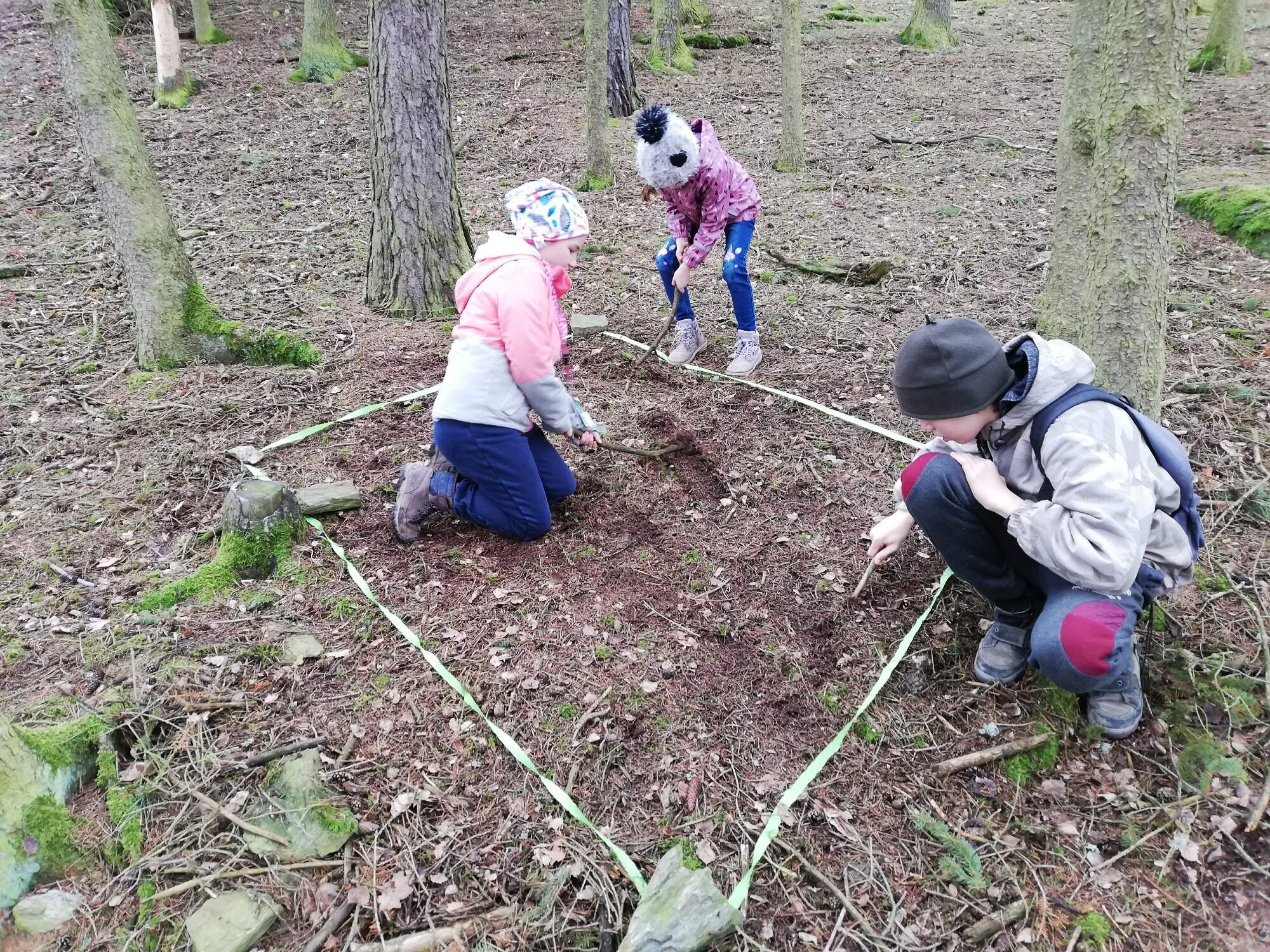 Když jsme oznámili dětem, že dnes bude soutěž o nejlepší "buchty", koukaly na nás trochu jako na blázny. Jako tady v lese budeme péct? Néééé. Buchty jsou přeci ty pozůstatky po divočácích, co nechají po rytí (buchtování) na loukách, pastvinách, polích i lesích. Co tam prasata hledají, jak se chovají, jak se celá rodina jmenuje a čím se živí - to bylo téma dnešního kroužku.